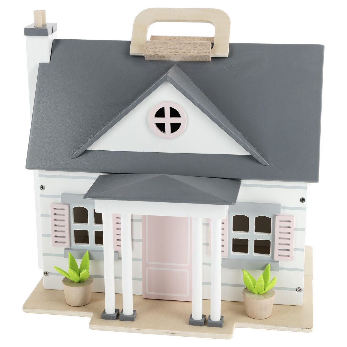 Nukkekoti puuta, avattava kantokahva, yli 3-vuotiaille