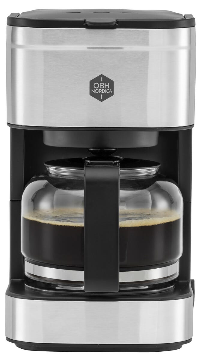• OBH Nordica Prio -kahvinkeitin, jossa tippalukko, lämpimänäpitotoiminto ja automaattinen sammutus.