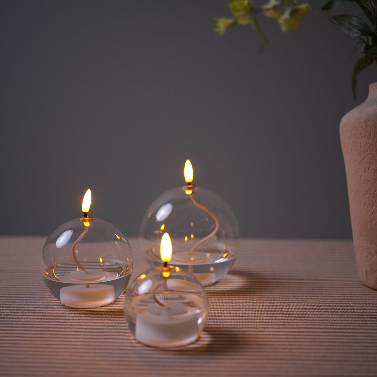• LED-ljus i transparent glas – trygg belysning utan brandrisk, passar alla rum.