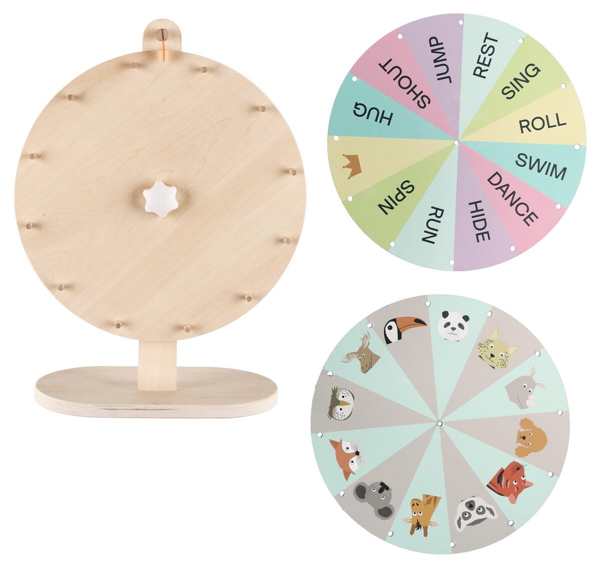• Onnenpyörä puuta – helppokäyttöinen pyöritettävä pyörä, joka asetetaan pöydälle.