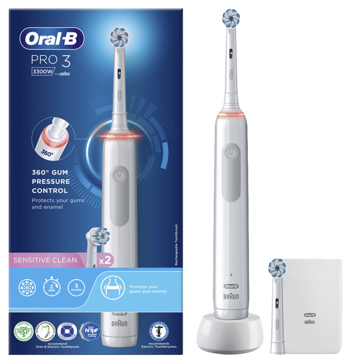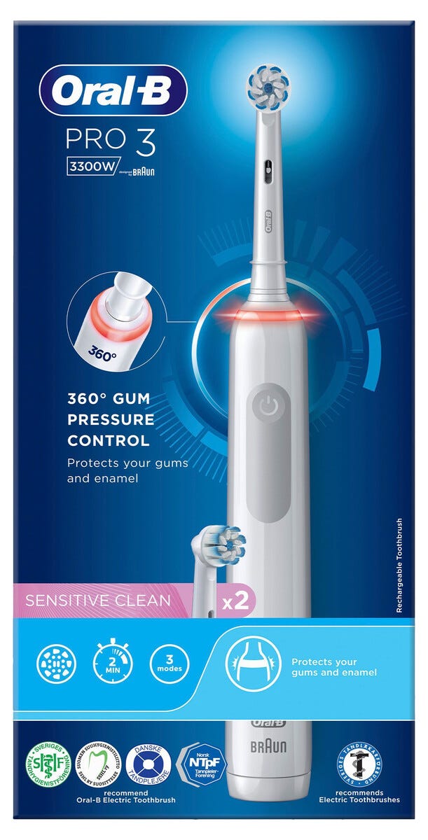 Oral-B PRO3 3300W Sähköhammasharja Sensitive Clean, 3 harjaustilaa