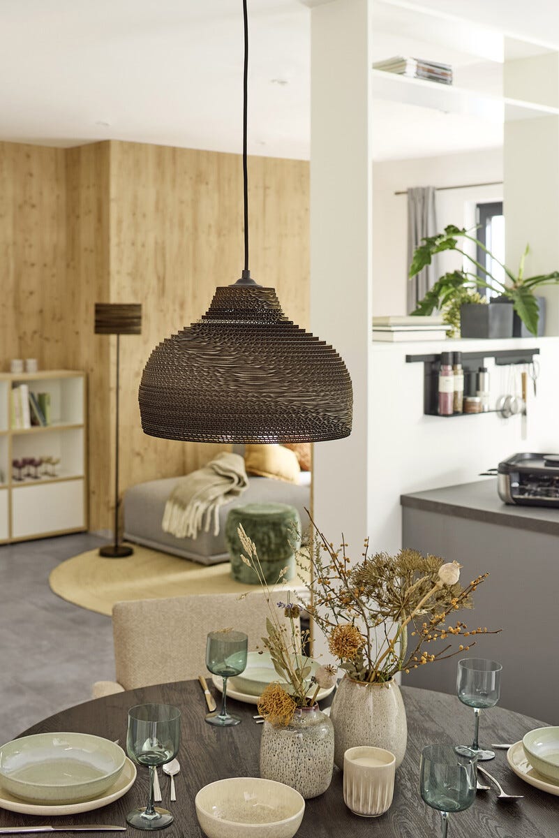 • Ainutlaatuinen pahvista valmistettu riippuvalaisin – luo lämpimän ja kodikkaan tunnelman.