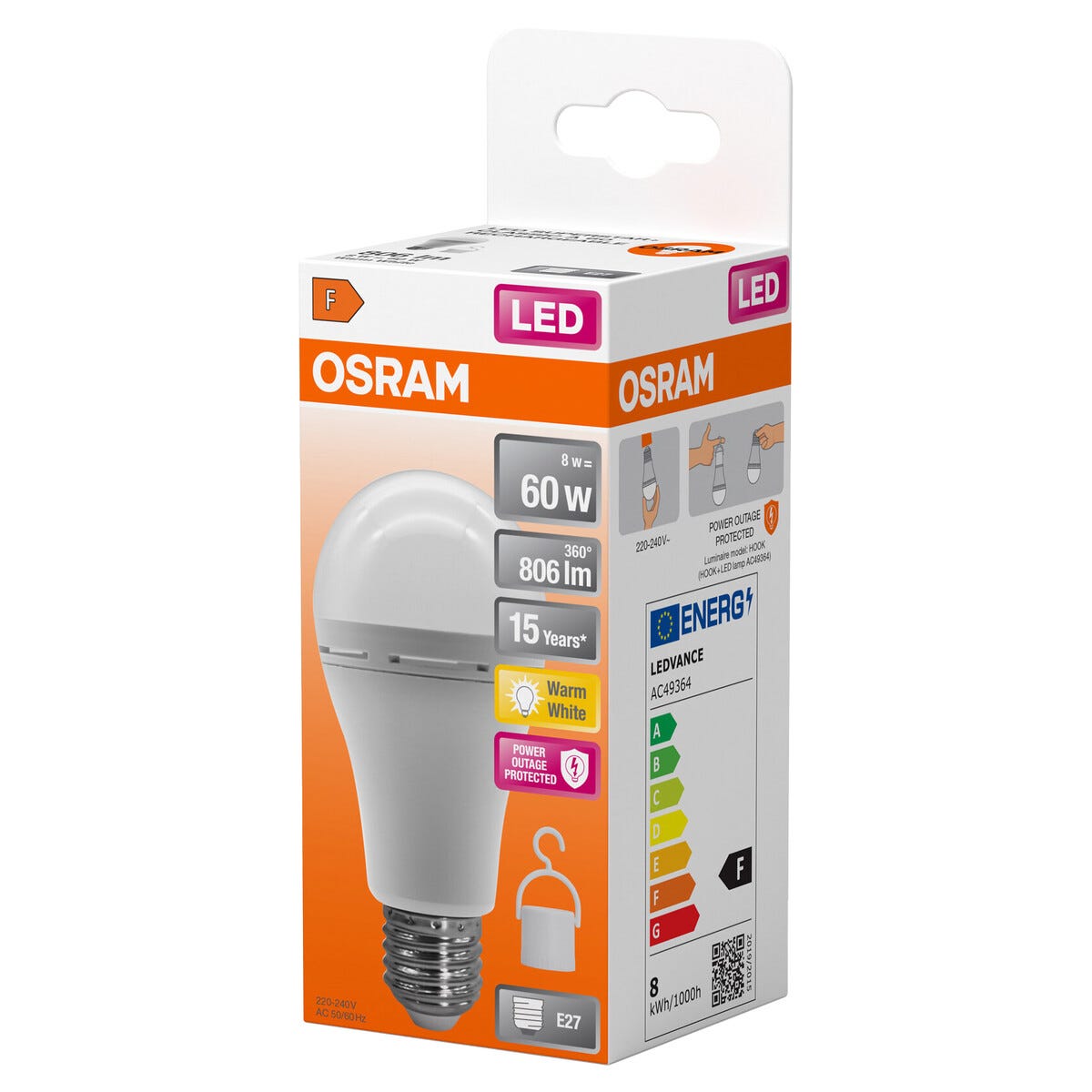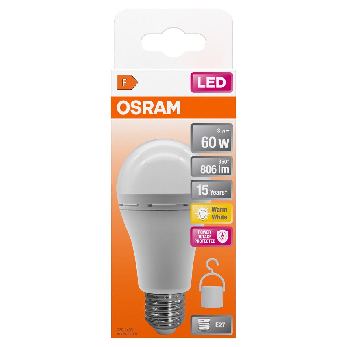 • Osram LED -lamppu sisäänrakennetulla varavirta-akulla – sopii katto- ja pöytävalaisimiin ym.