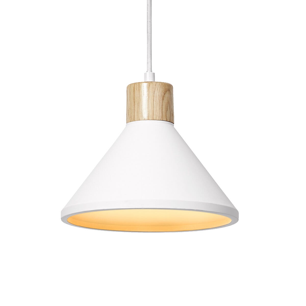 • Pendelarmatur i trä med ett fint, nedåtriktat ljus för vardagsrum eller matsal.