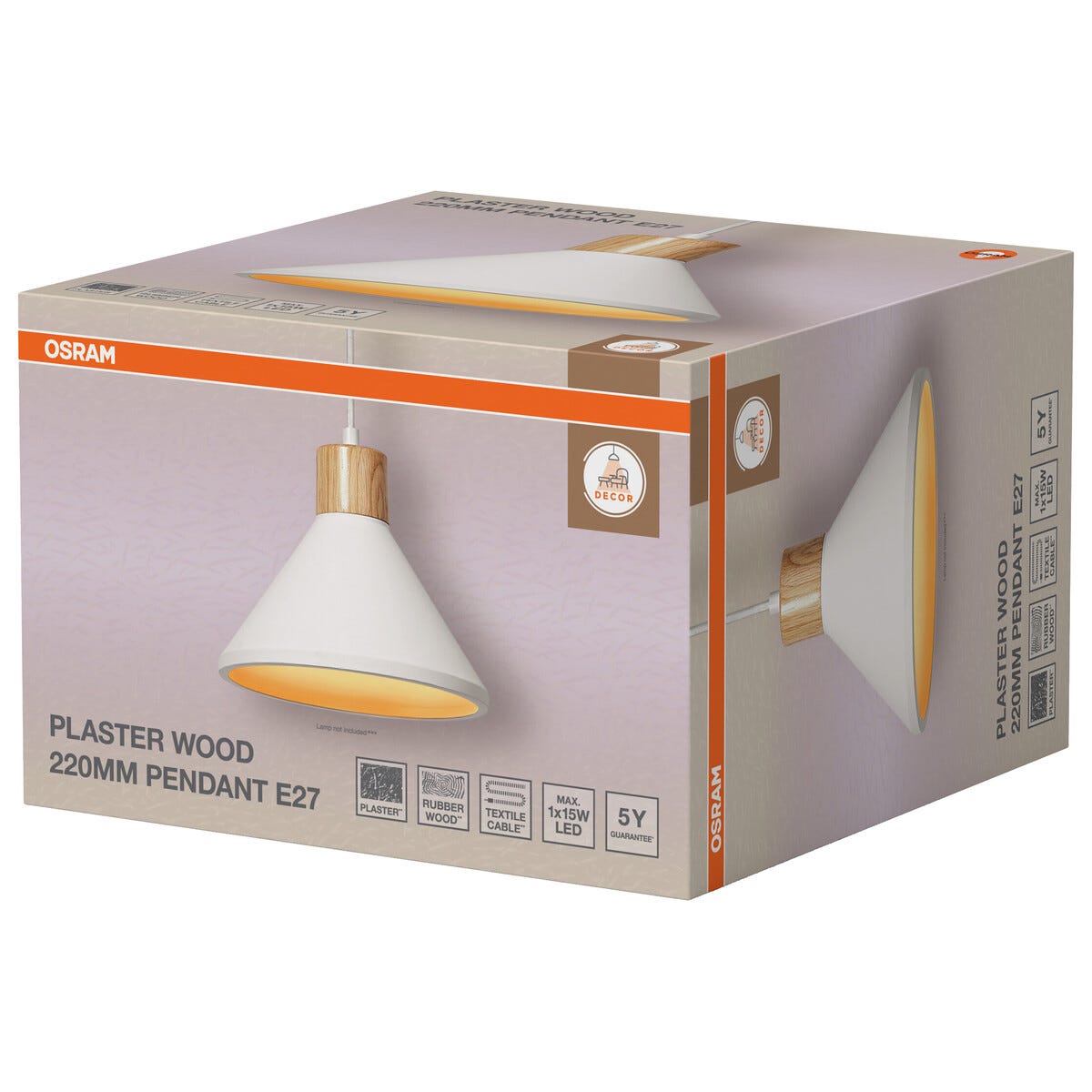 • Osram Plaster Wood taklampa E27 – välj ljuskälla själv efter dina behov.
