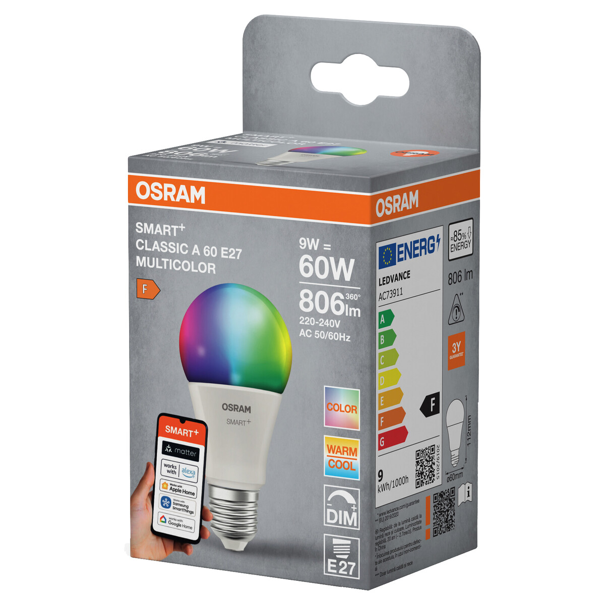 • Osram Smart+ LED-lamppu – yhteensopiva Matter-, Alexa-, Google Home- ja Apple Home -järjestelmien kanssa.