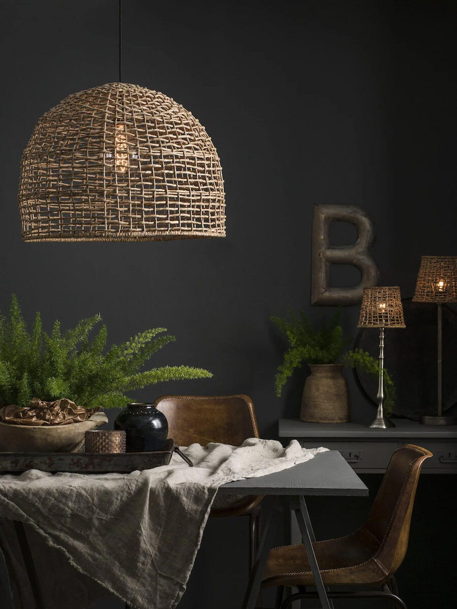 • PR Home Cebu taklampa med handflätad lampskärm i naturmaterial.