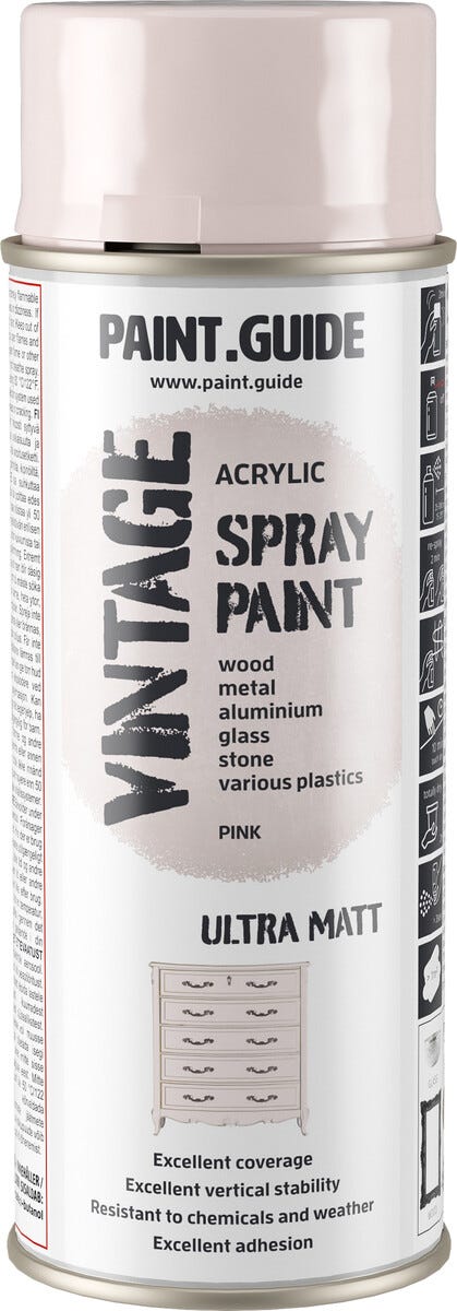 • Paintguide Vintage -spraymaali – nopeasti kuivuva akryylimaali, joka muistuttaa kalkkimaalia.