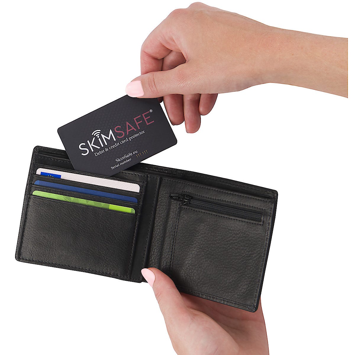 • Skyddar dina bank- och kreditkort mot trådlös skimning.