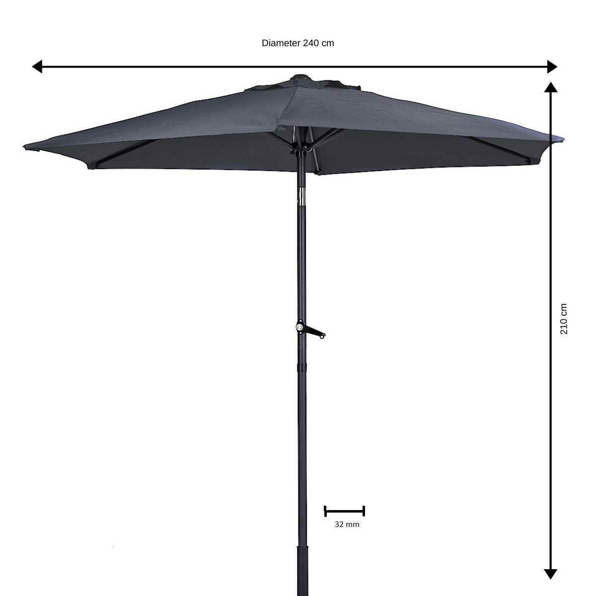 • Kestävä aurinkovarjo polyesteriä – kampi ja kallistustoiminto.