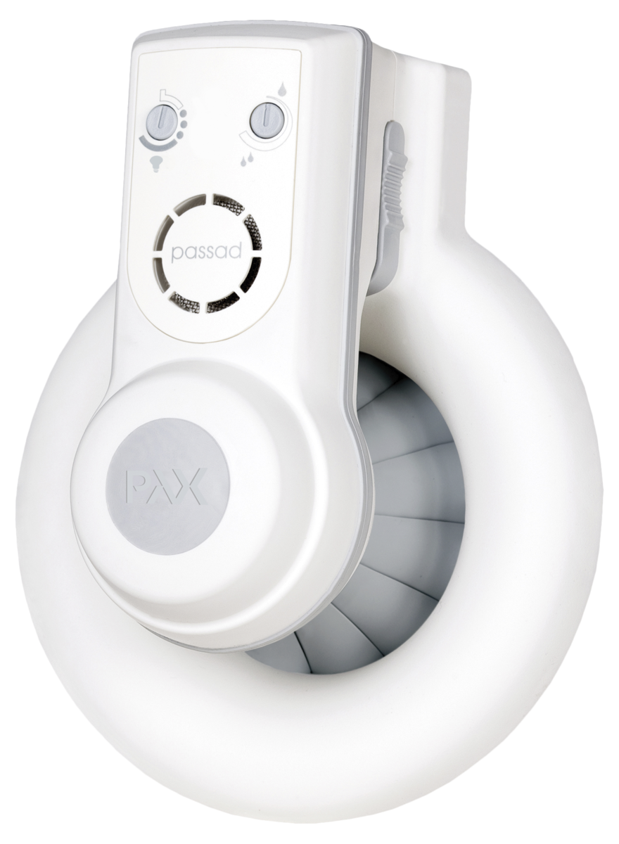 • Pax Passad 31 – energiatehokas kylpyhuonetuuletin, jossa takavedonestin.