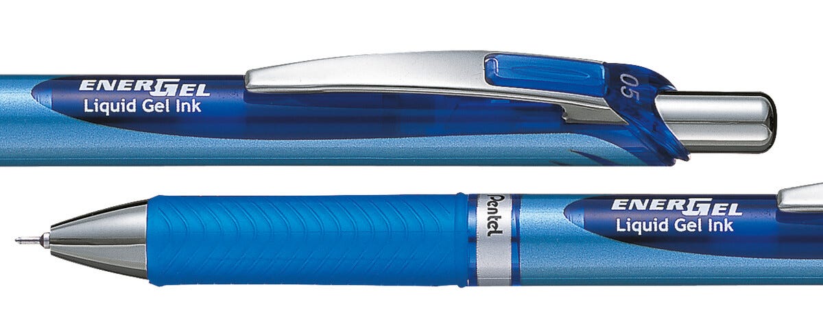 • Pentel EnerGel Xm, jossa on nopeasti kuivuva muste – täydellinen vasenkätisille.