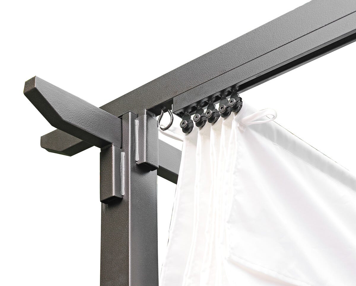 • Pergola med soltak av polyester med vattenavisande beläggning.