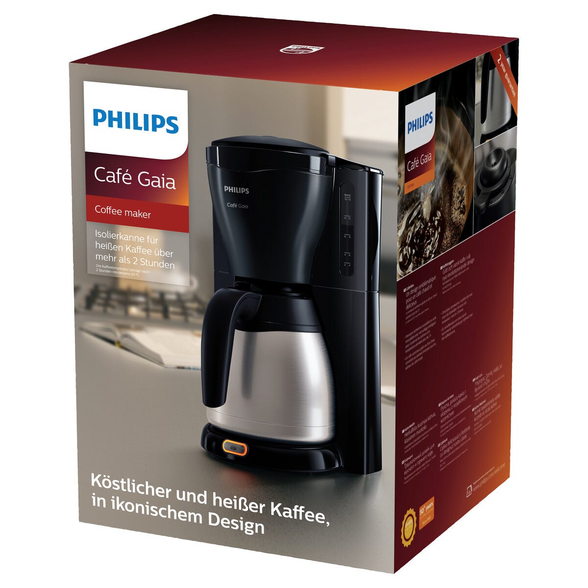 • Klassinen Philips HD7544/20 -kahvinkeitin, joka säilyttää kahvin aromin.