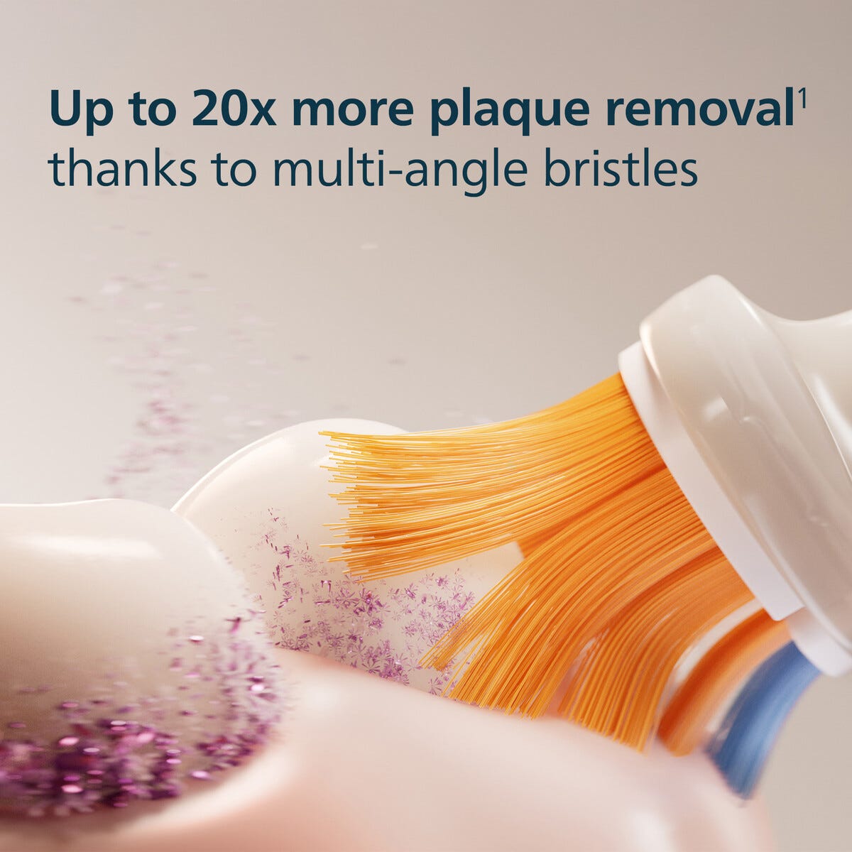 • Poistaa jopa 20 kertaa enemmän plakkia kuin perinteinen hammasharja.