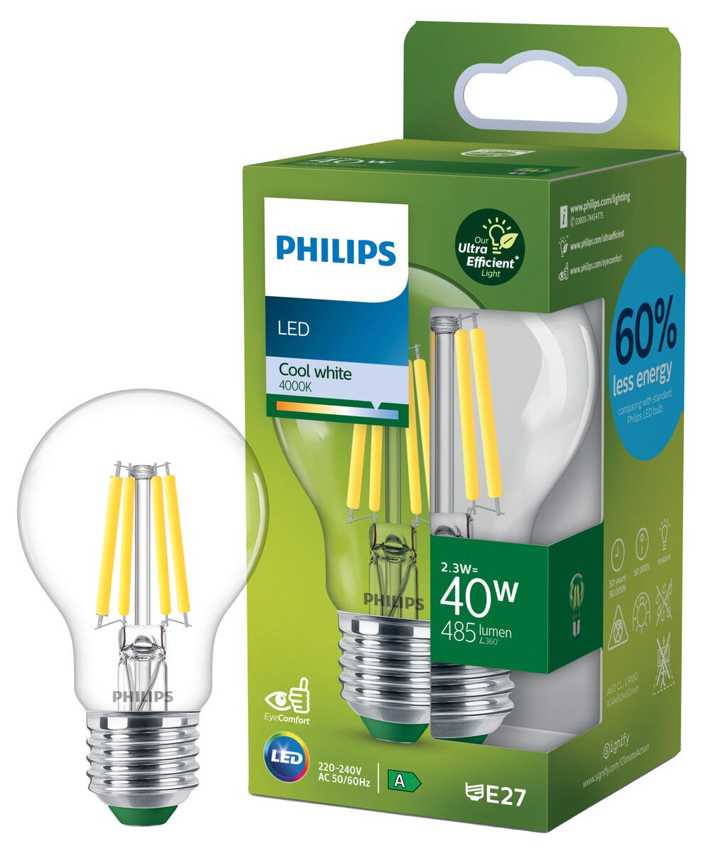 Philips Ultra Efficient E27 A60 2,3 W LED-lamppu, kylmän valkoinen