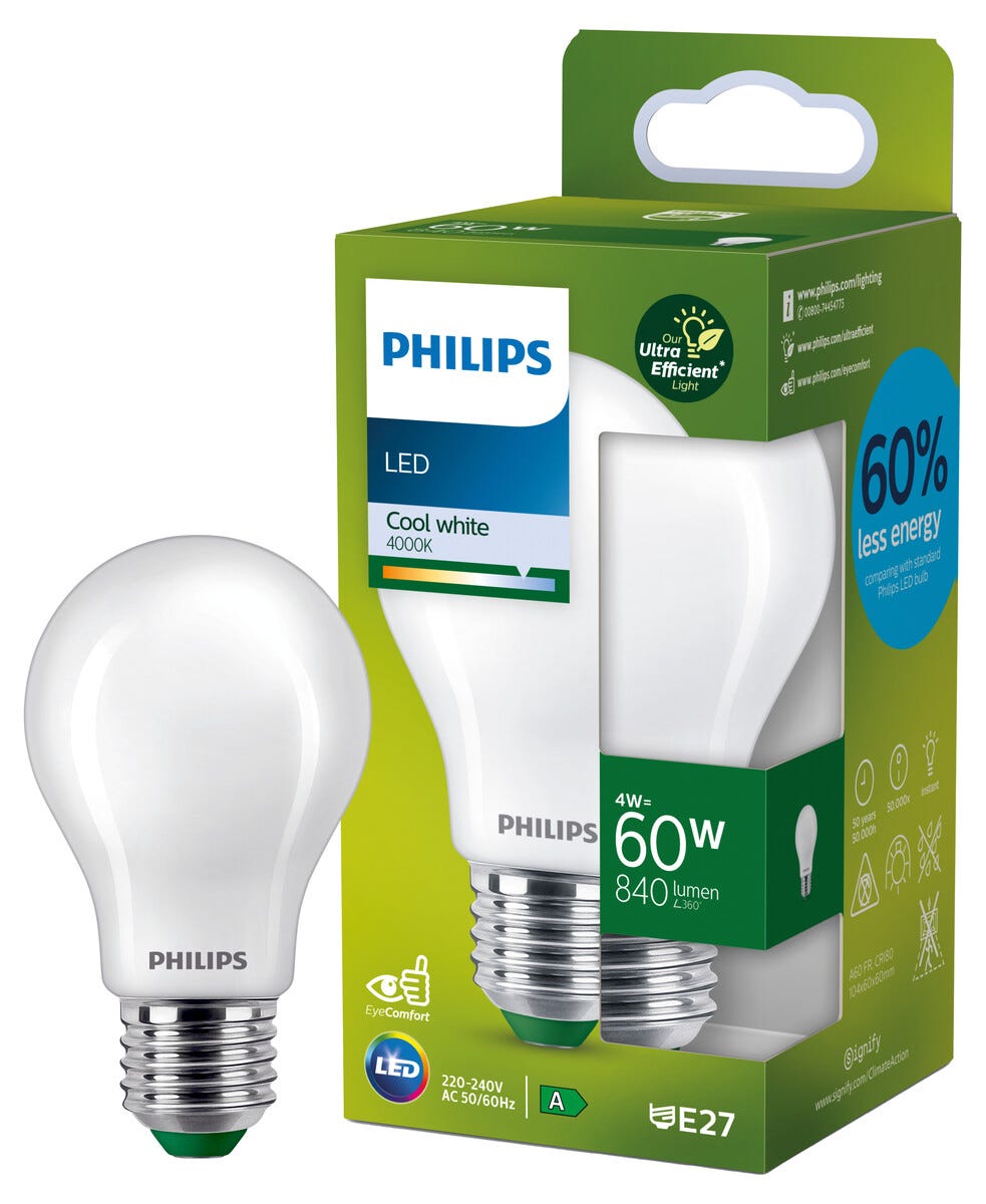 Philips Ultra Efficient E27 A60 4 W LED-lamppu, kylmän valkoinen