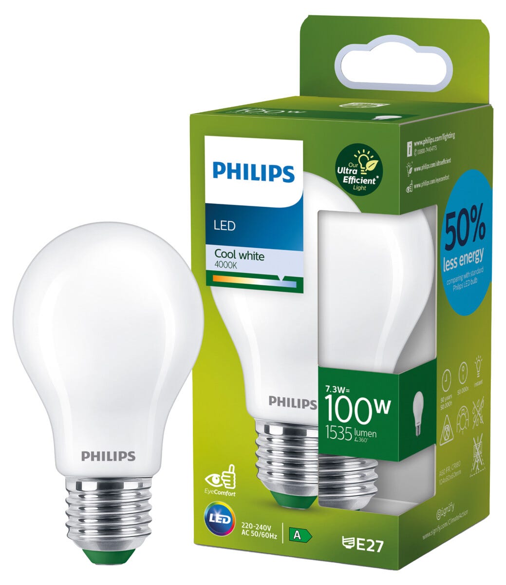 Philips Ultra Efficient E27 A60 7,3 W LED-lamppu, kylmän valkoinen
