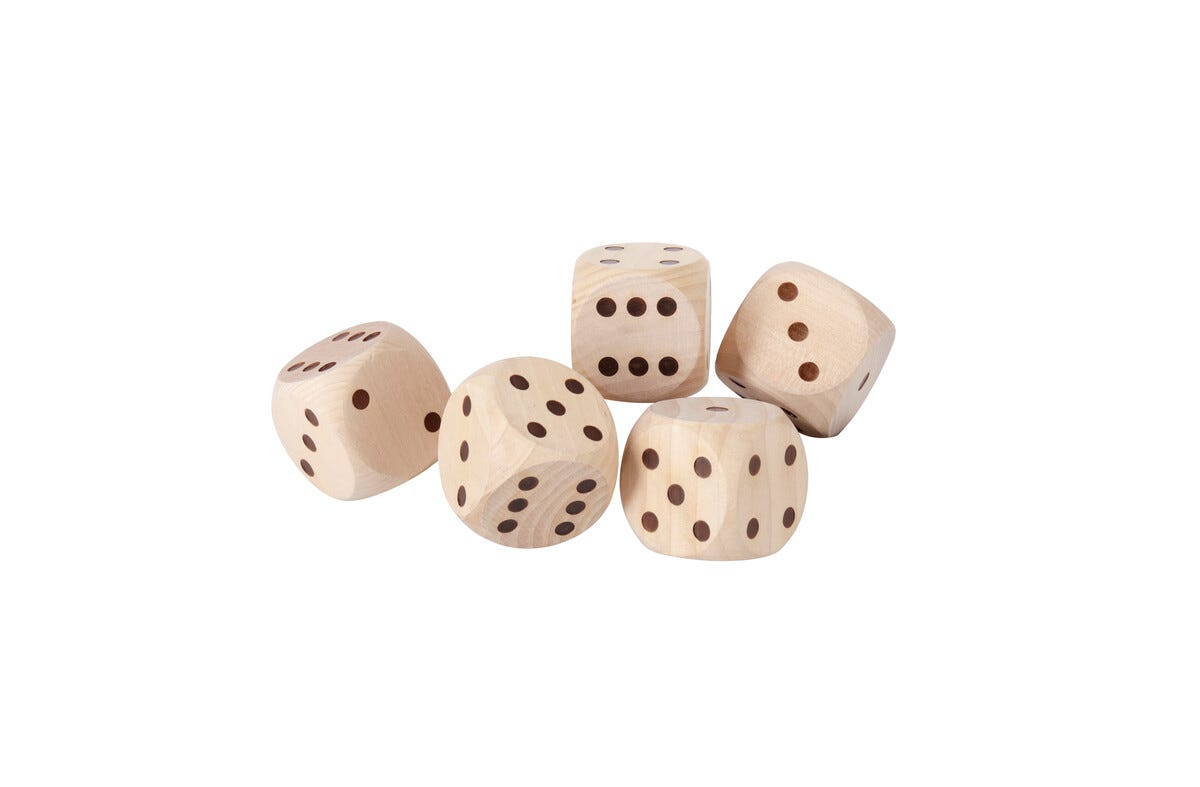 • Viisi isoa puista noppaa.