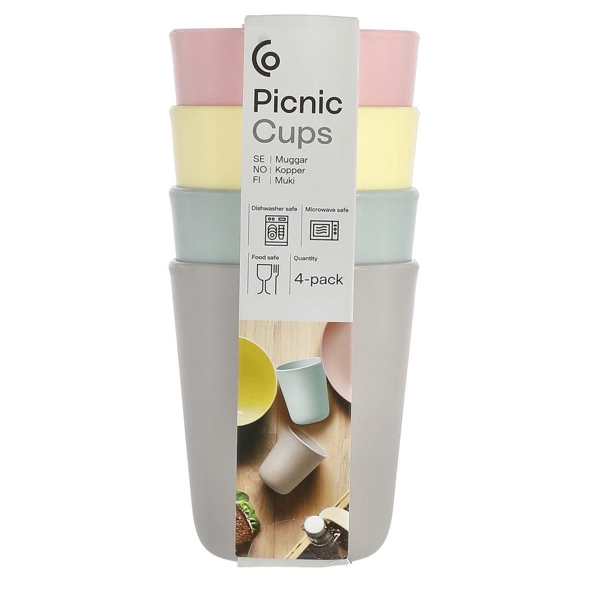 • Isot muovimukit (350 ml) – täydelliset piknikille tai juhliin.