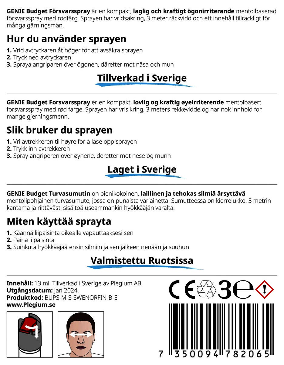 • Plegium Budget -turvasumutin – lisenssivapaa vaihtoehto pippurisumuttimelle.