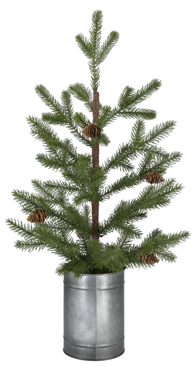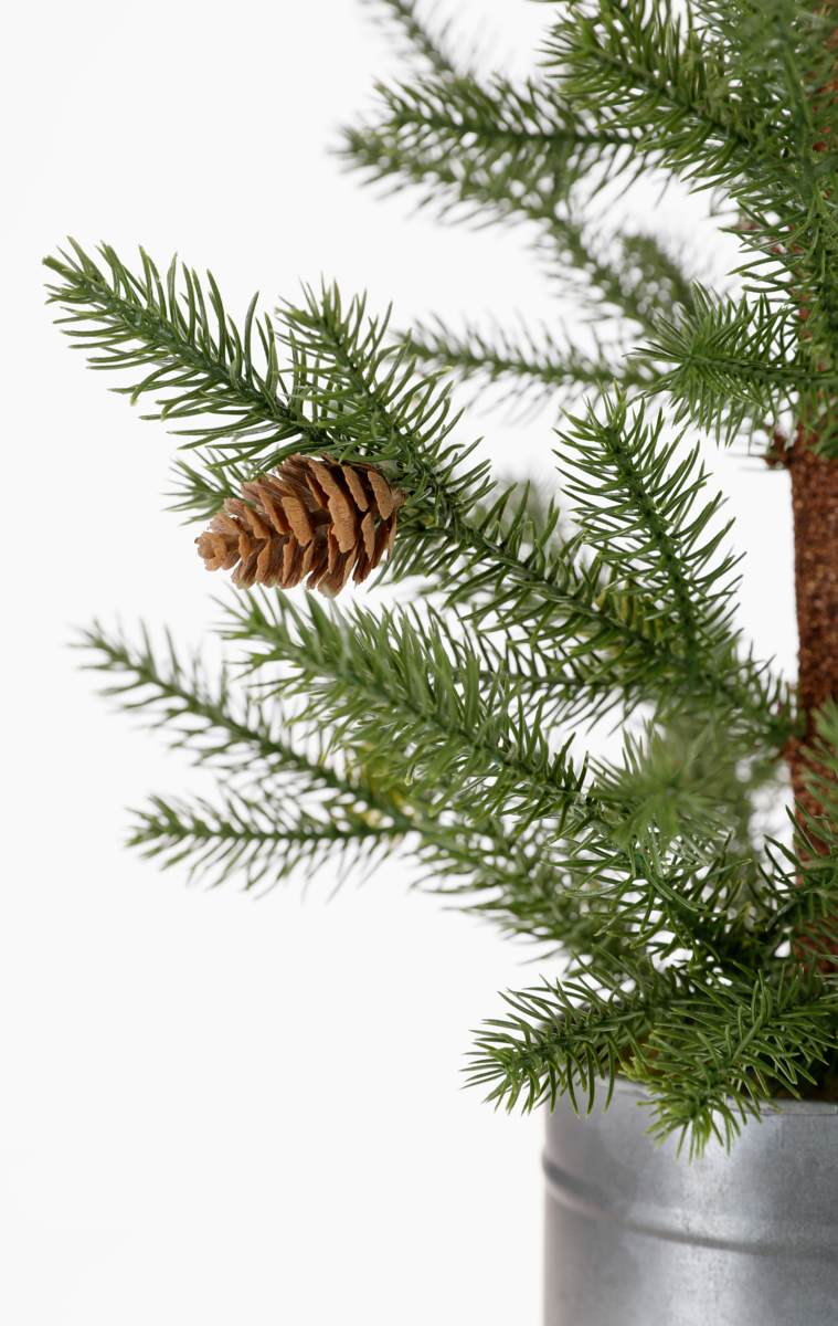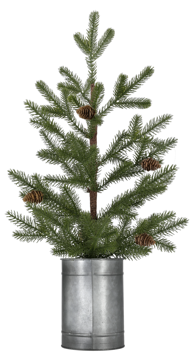 Pöytäkuusi, jossa käpyjä ja peltiruukku, 60 cm