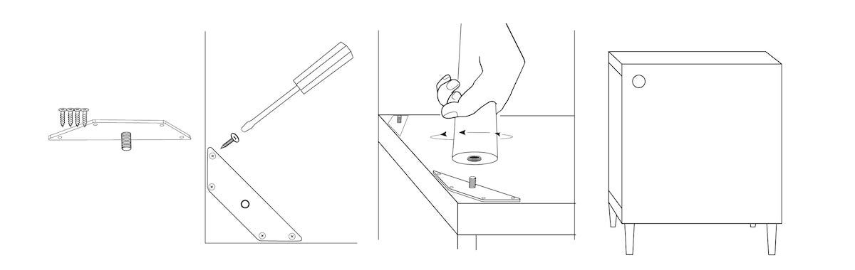 • Kalustejalkojen asennushela – 1 musta hela ja 4 ruuvia.
