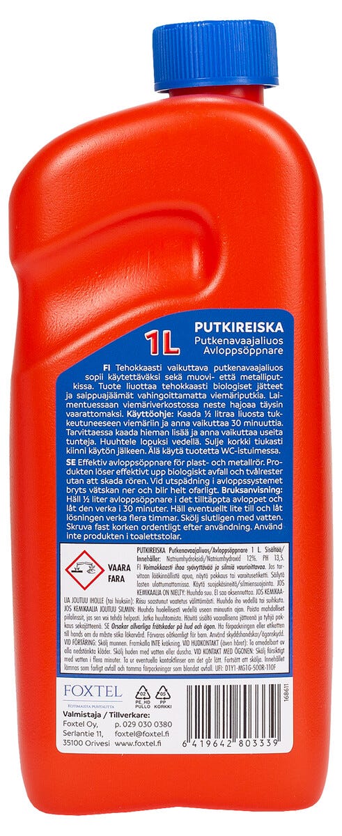 • Pakkauksen koko: 1 litra, pH-arvo: 13,5.
