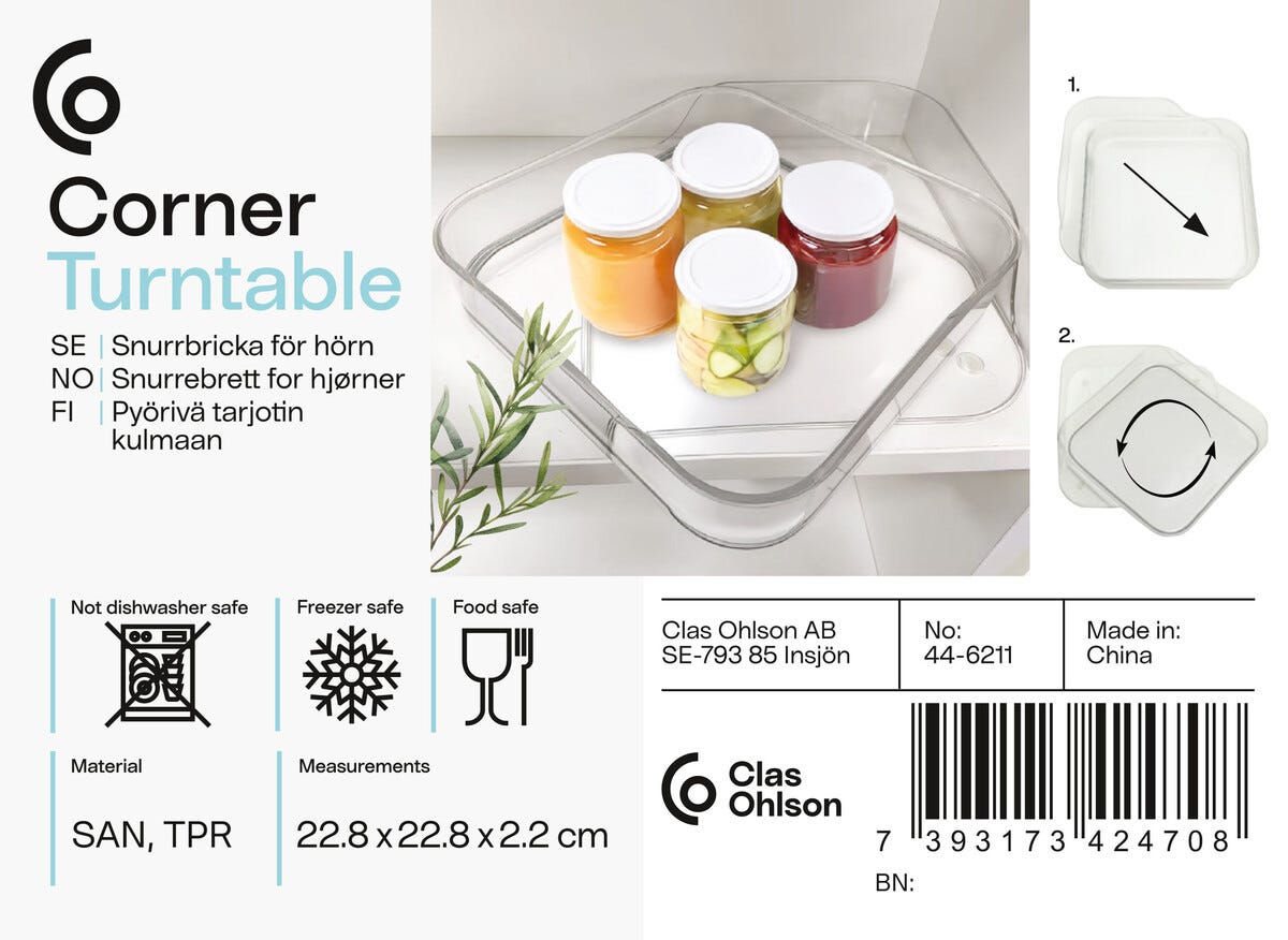 Snurrbricka för hörn Lazy Susan, fyrkantig, 22,8 x 22,8 cm
