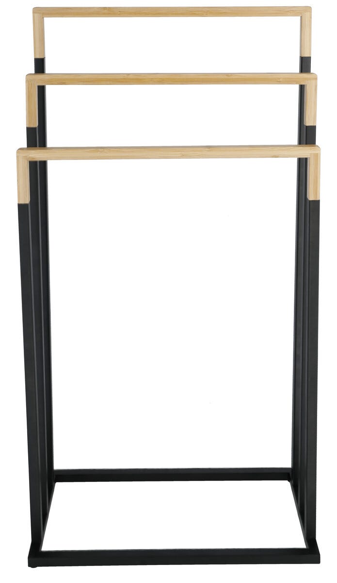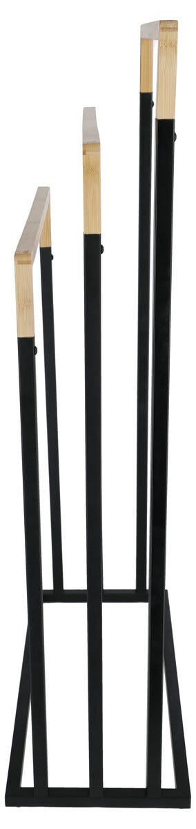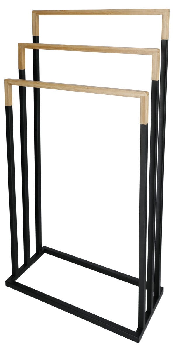 Golvstående handdukshängare 3 nivåer, bambu, svart metall