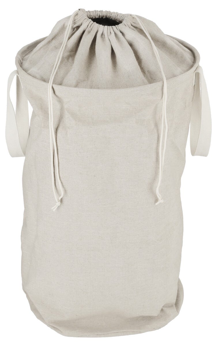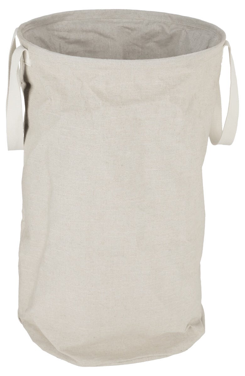 • Tilava pyykkikori, jossa on pellavainen ilme – kiristysnaru ja kaksi kahvaa.