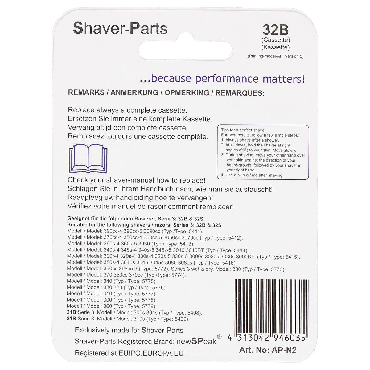 • Byt skärhuvud var 18:e månad för bästa rakresultat.