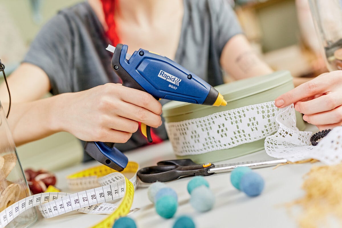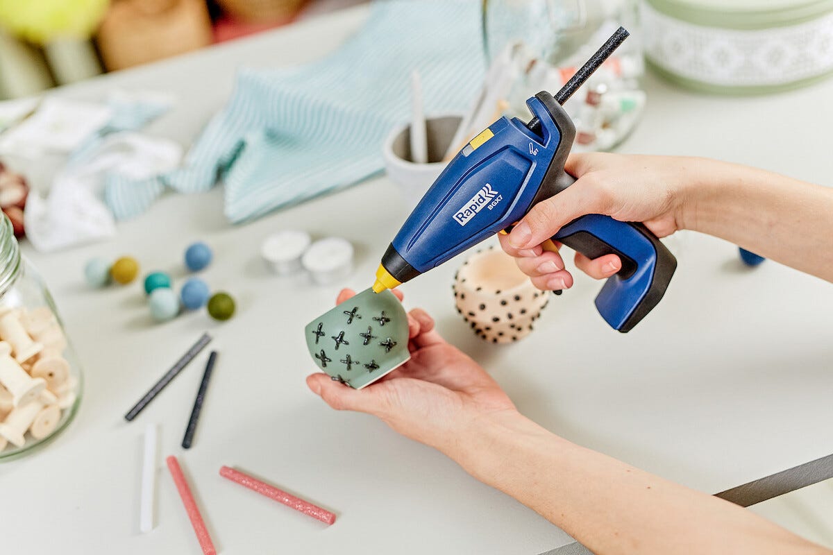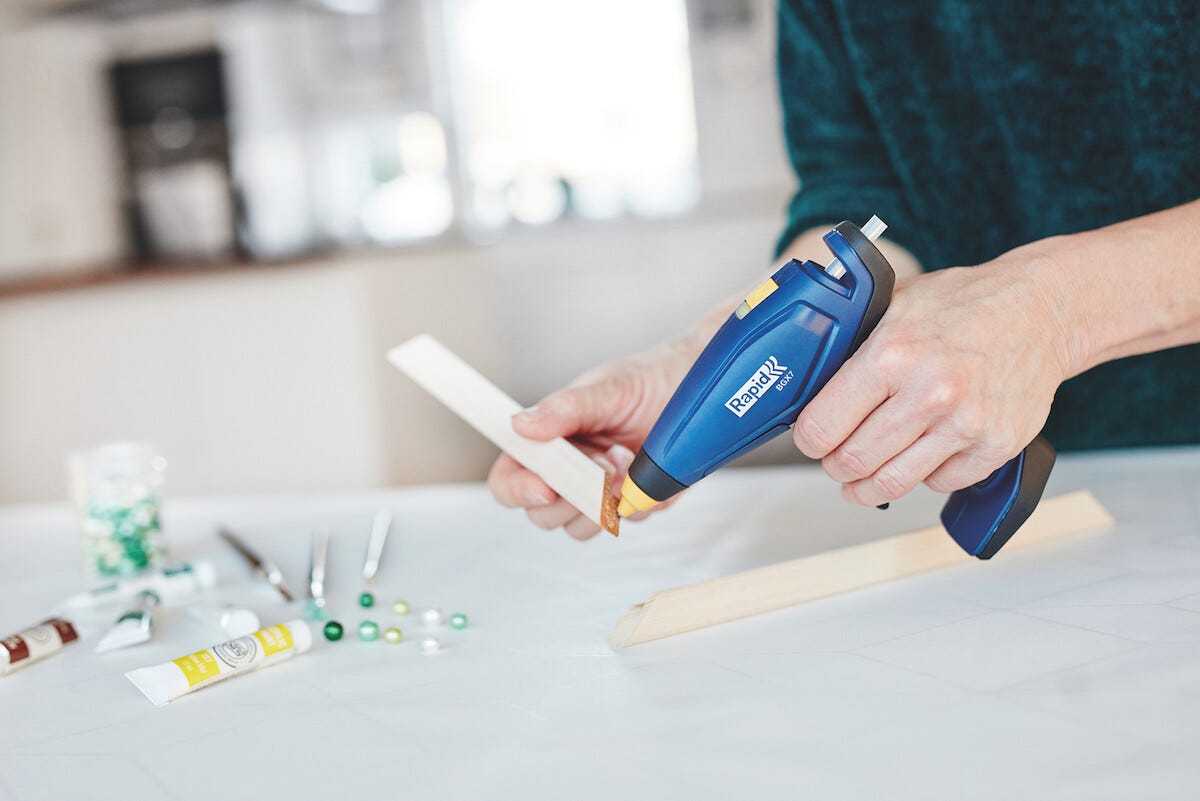 • Pyssla, laga och dekorera sladdlöst med smältlim.