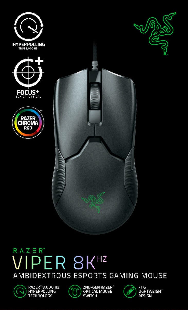 • Razer Viper 8KHz – ohjelmoitava hiiri (7+1), jossa Razer Chroma RGB.