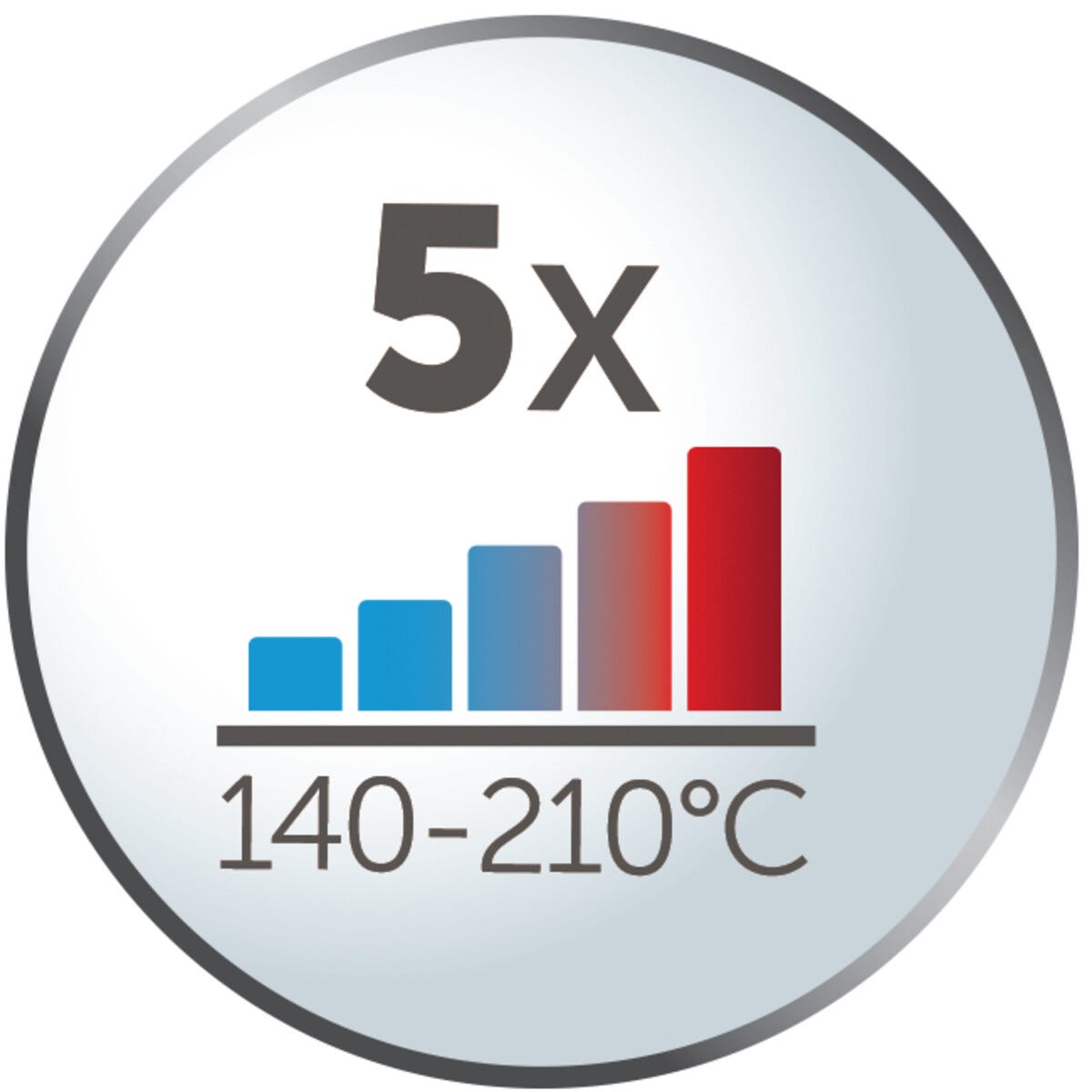 • 5 värmelägen upp till 210 °C, anpassa efter din hårtyp.