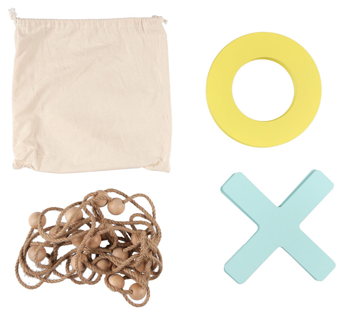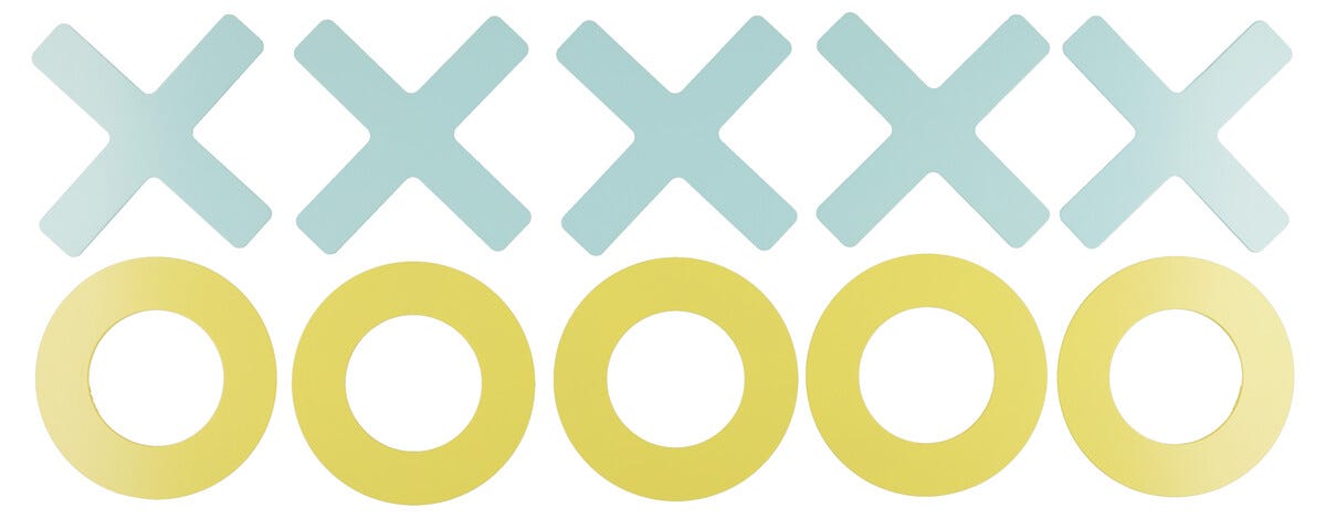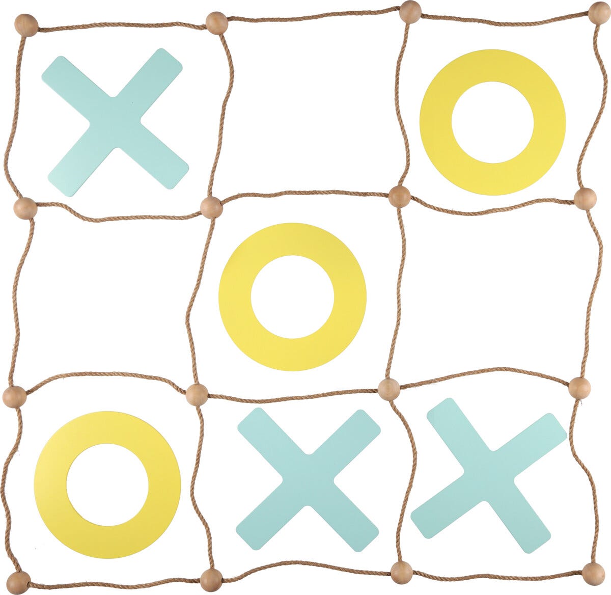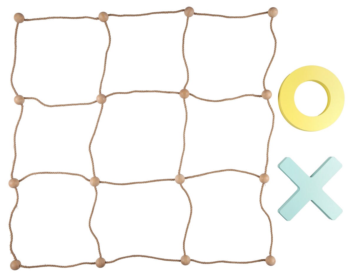 • Laita pelinappulat juutista valmistetulle pelilaudalle – 5 ympyrää, 5 ristiä ja pelilauta.