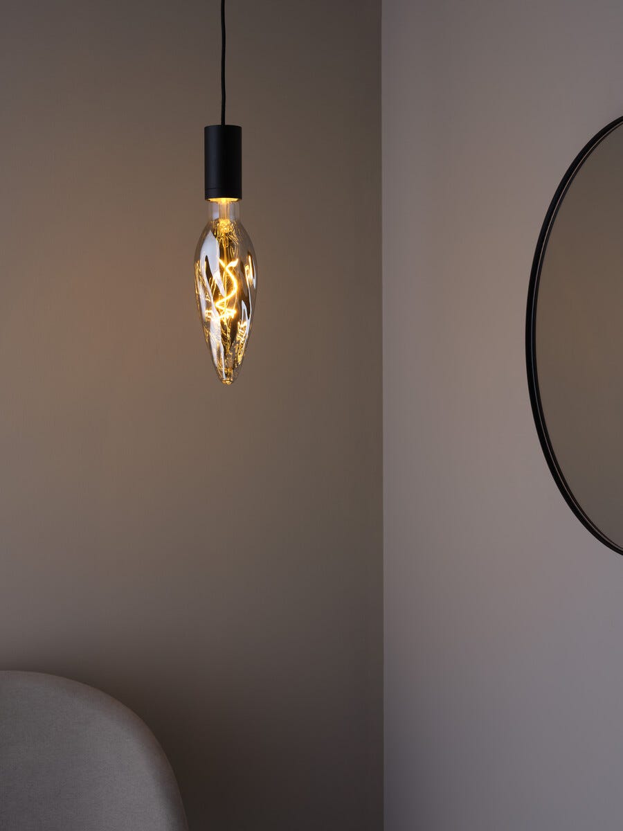 • Savunvärinen LED-lamppu, E27-kanta – himmennettävä (LED-himmennin myydään erikseen).
