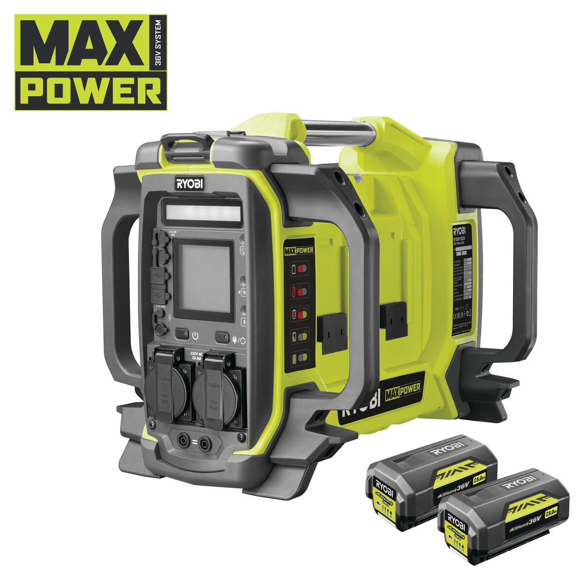Ryobi Kannettava virtalähde Max Power 36 V RY36BI1800A-250 ja 2 akkua
