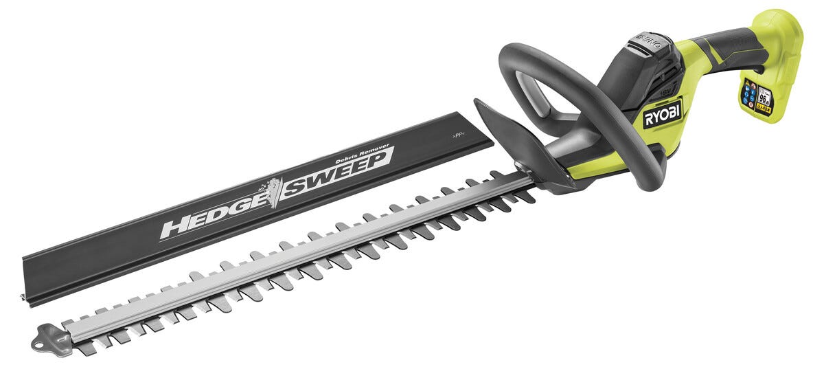 • Ryobi RY18HT50A-0 – häcksax med ett 50 cm svärd. Kapar grenar upp till 24 mm.