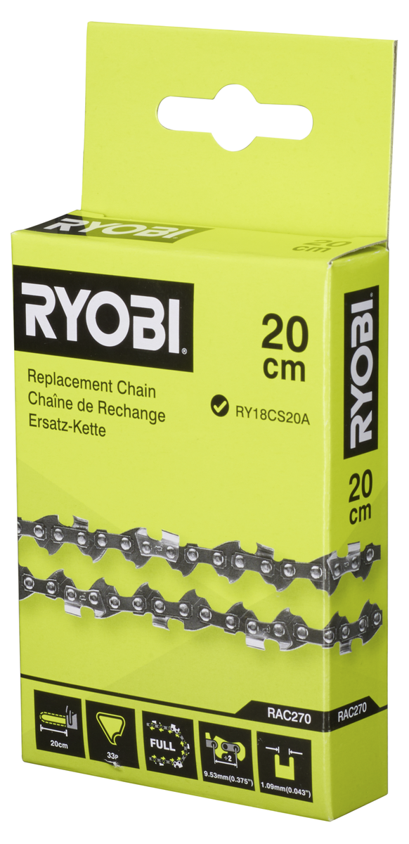 • Ryobi RAC270 – teräketju, 33 lenkkiä. Sopii 20 cm terään.