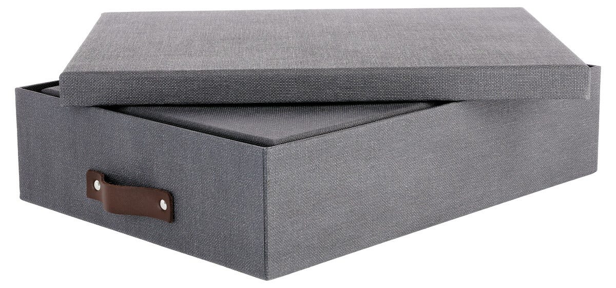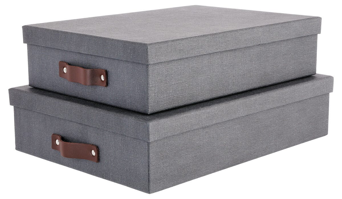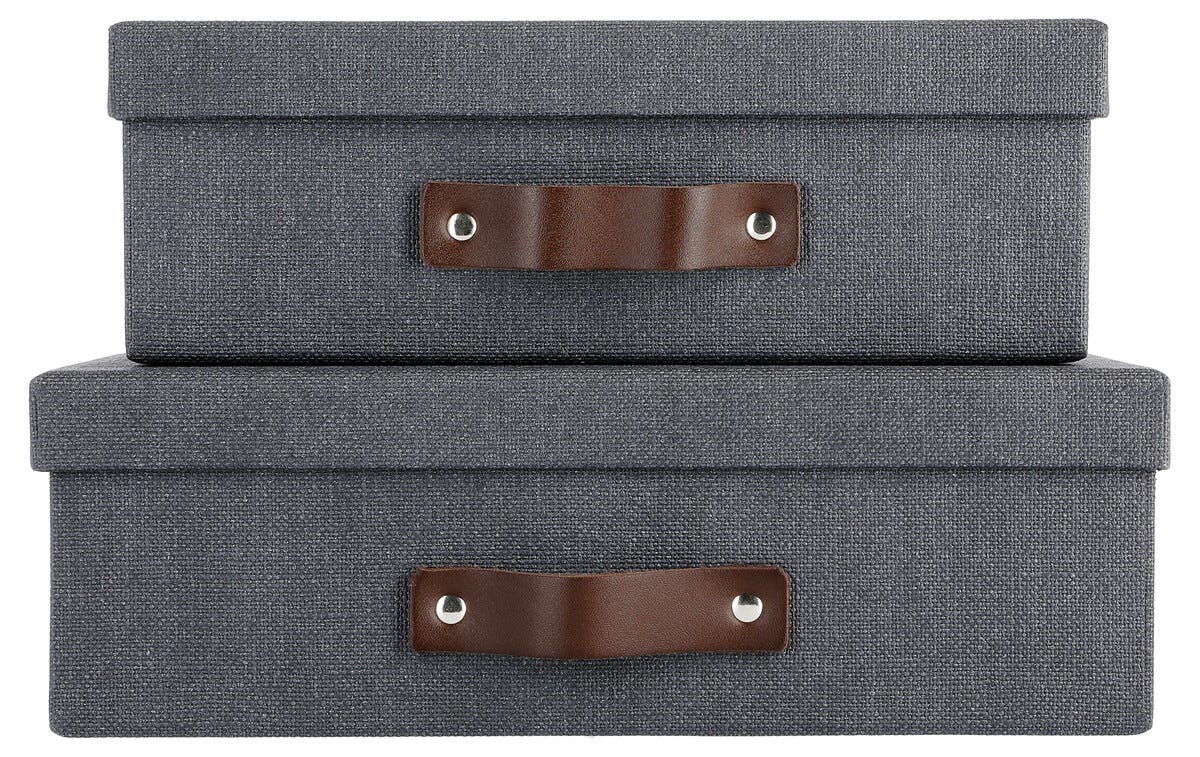 Säilytyslaatikko nahkakahvalla 2 kpl, tummanharmaa
