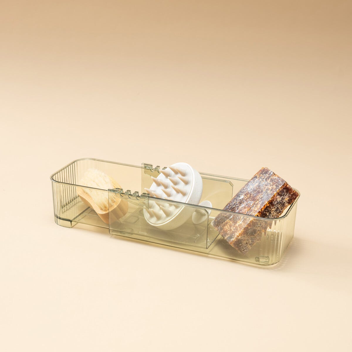 • Säädettävä säilytyslaatikko – kätevä läpinäkyvä laatikko vihreää PET-materiaalia.