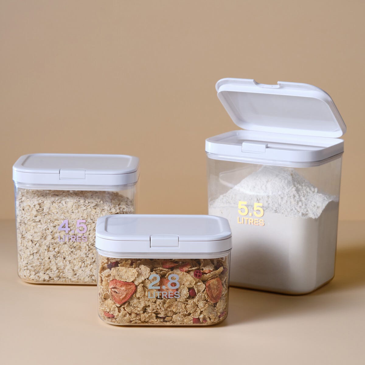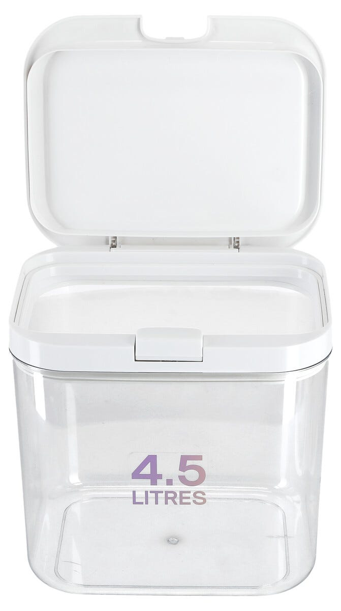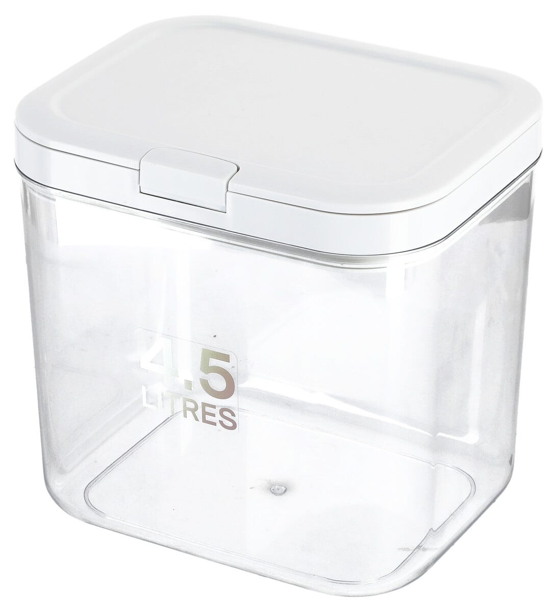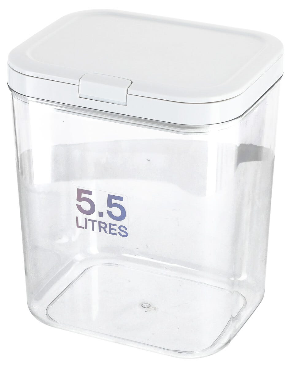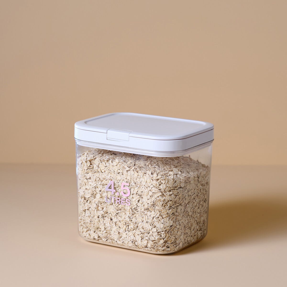 • Muovinen säilytyspurkki riisille, pastalle, pähkinöille ym. – ilmatiivis kansi pitää ruoan hyvänä pidempään.