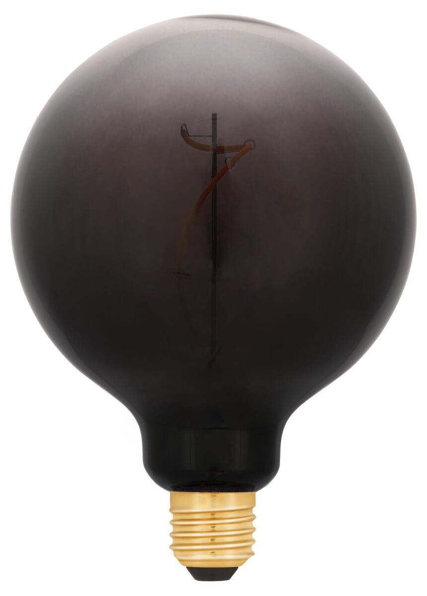 • LED-lamppu E27-kannalla, tumma savunvärinen lasi – himmennettävä (LED-himmennin myydään erikseen).