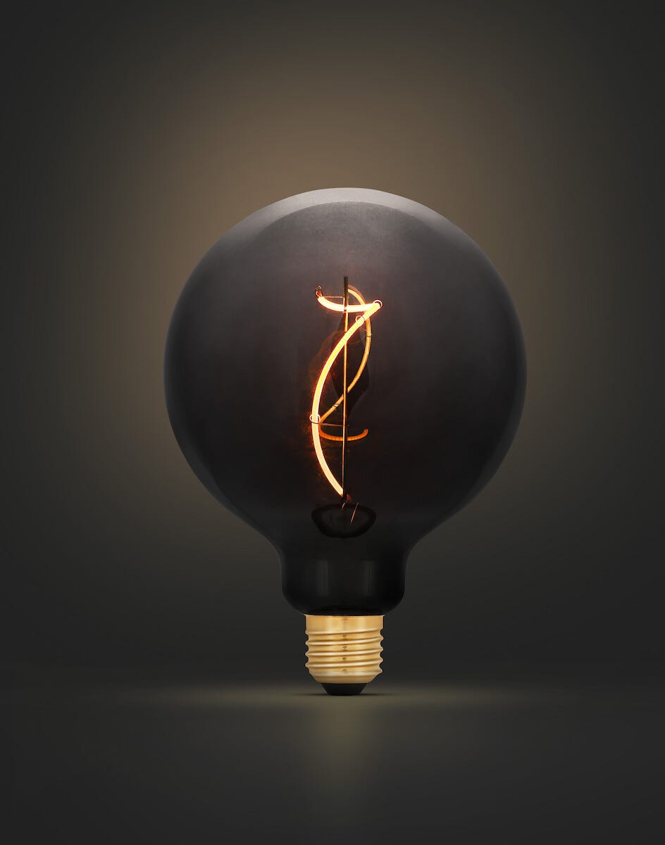 • Lamppu, jossa spiraalinmuotoinen filamenttilanka – muistuttaa hiililankalamppua.