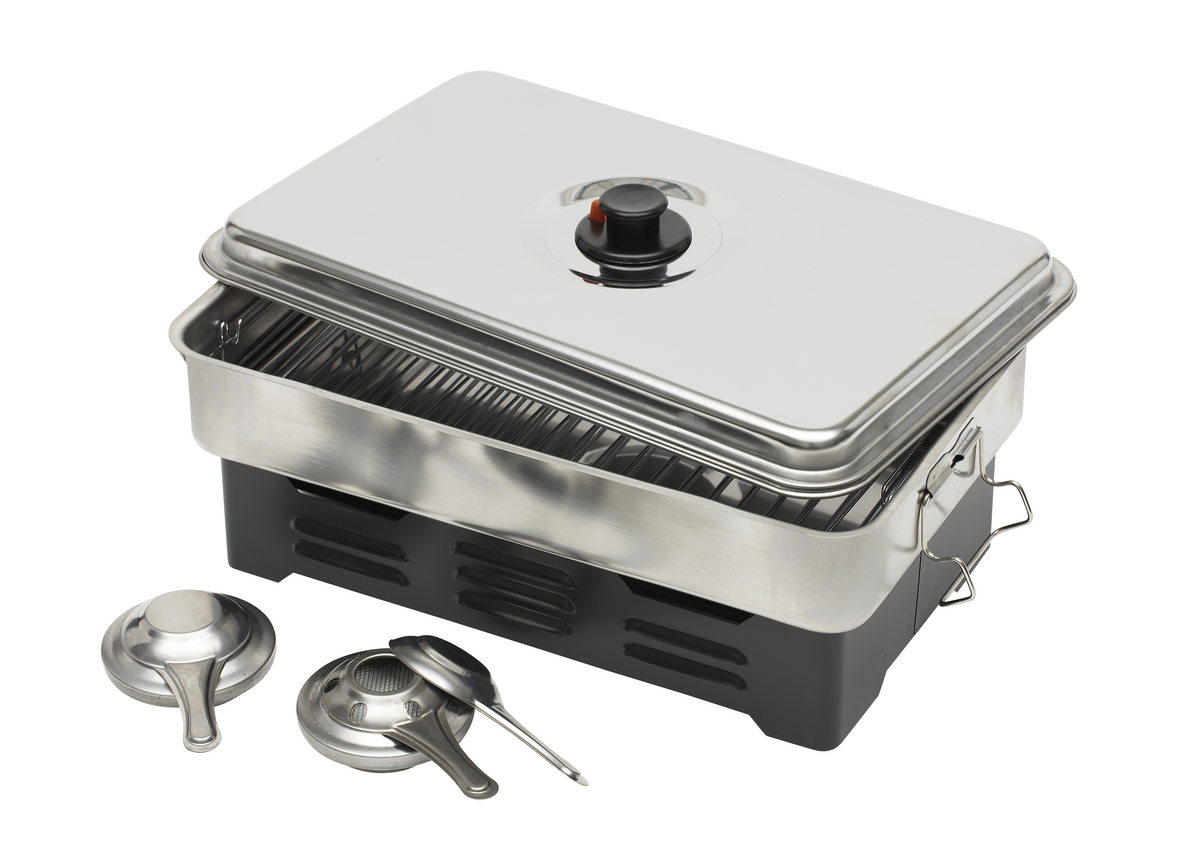 Kalan savustaminen on hauskaa ja suosittua. Savustuslaatikolla savustat helposti itse kalat. Ruostumatonta terästä. Savustuslaatikossa on kaksi poltinta.