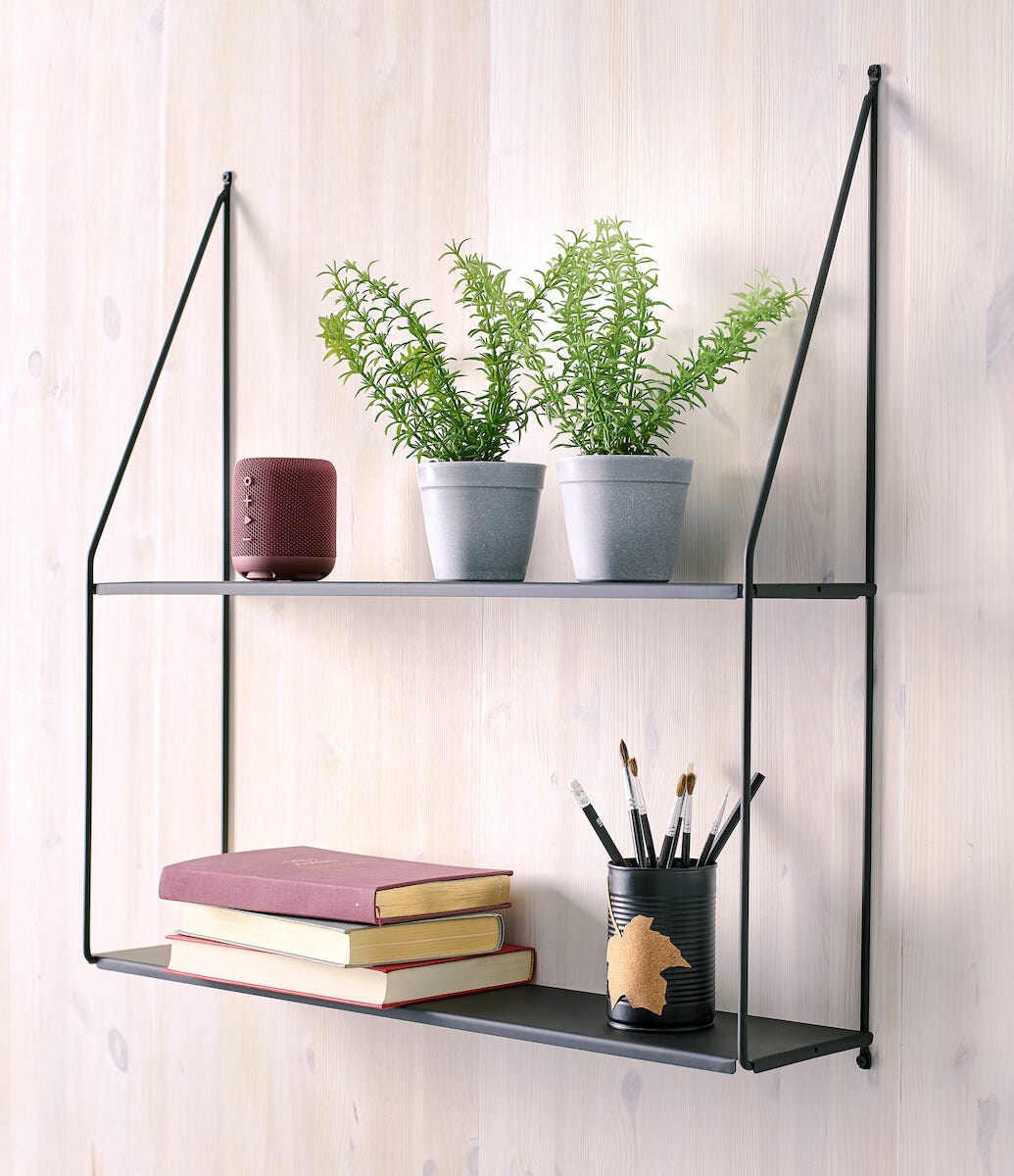 • Musta seinähylly metallia – sopii hyvin koriste-esineille.