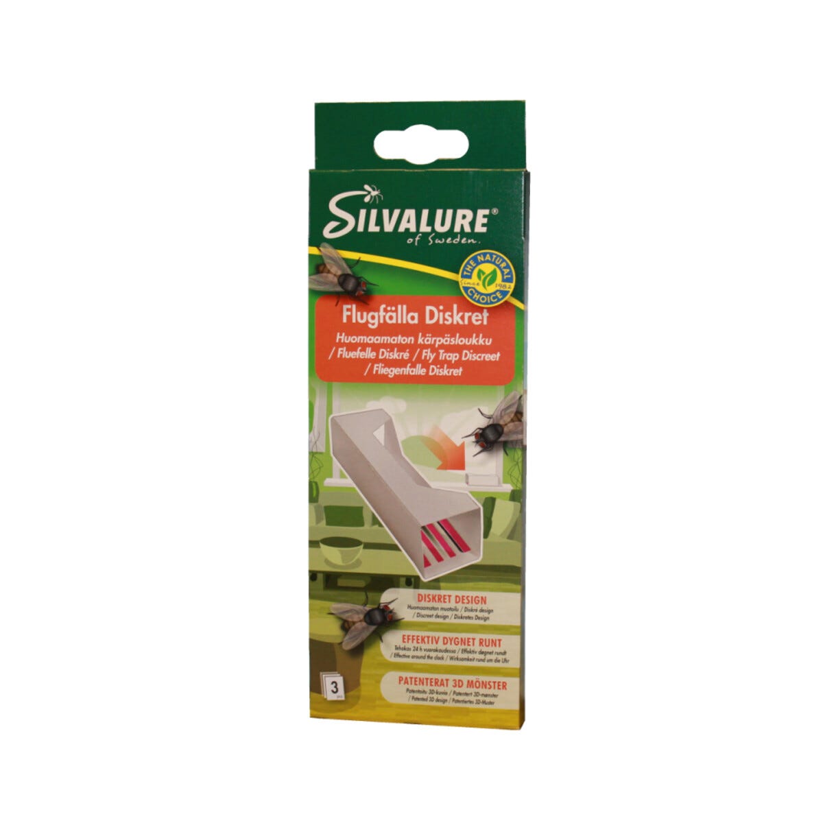 • Huomaamaton Silvalure-kärpäsansa, 3 kpl – sieppaa kärpäset tehokkaasti ilman vahvoja kemikaaleja.