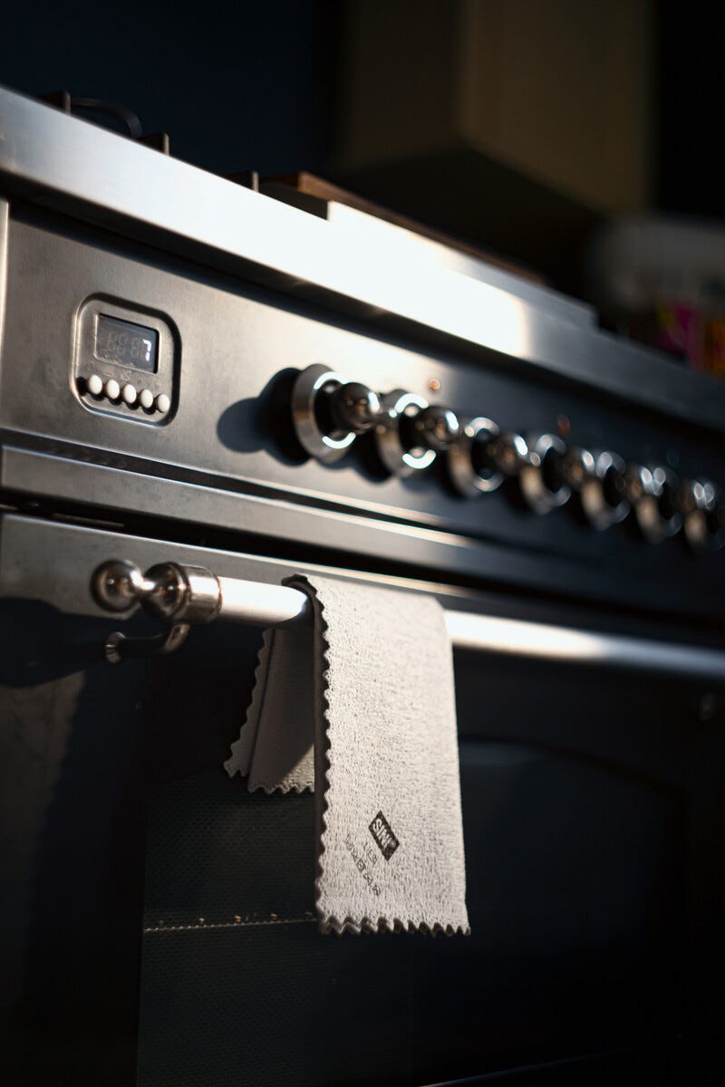 • Sini-mikrokuituliina lieden puhdistukseen – pesee liedet hohtavan puhtaiksi ilman raitoja.