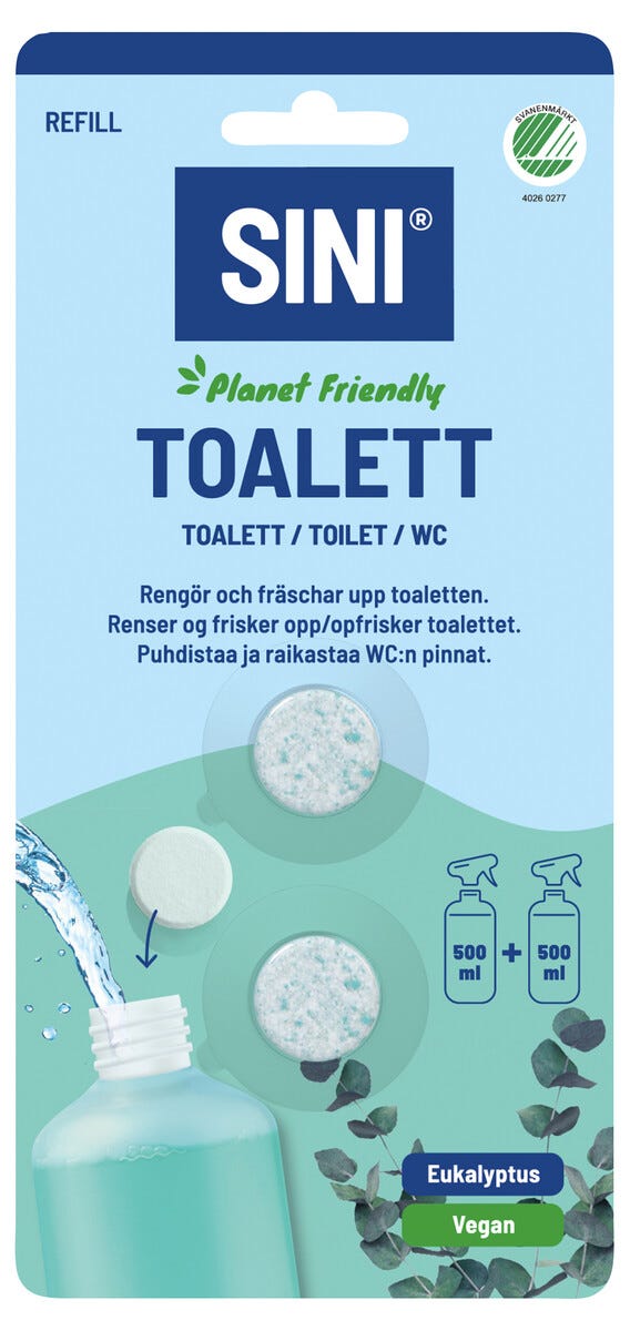 • Joutsenmerkitty ja valmiiksi annosteltu puhdistustabletti – lisää vain vesi.